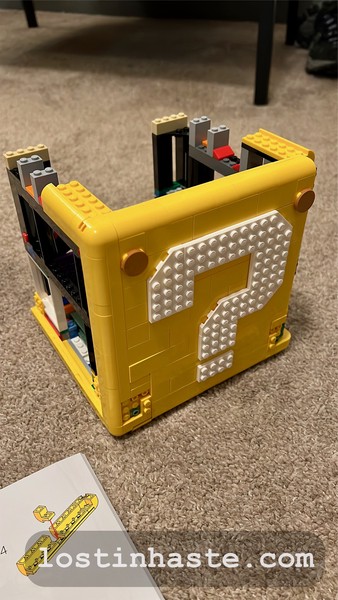 Well, I finally finished it! ๐ It only took a year (I bought this back in October of 2021) but I finally finished building the Super Mario 64โข Question Mark Block, aka, the "?" block from various Mario games.